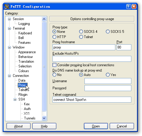 代理服务器的地址填写到 Proxy hostname 这里,Port 就是代理服务的端口(HTTP代理常用端口有 3128、8080,Socks5代理常用端口有 1080)