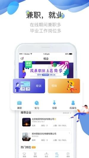 易同学app为高校和企业搭建沟通与交流的桥梁,帮助学生解决实习、就业等需求,同时提供找兼职的服务。帮助企业精准定位解决人才需求的服务、帮助学校解决学生就业、优良企业筛选的需求。