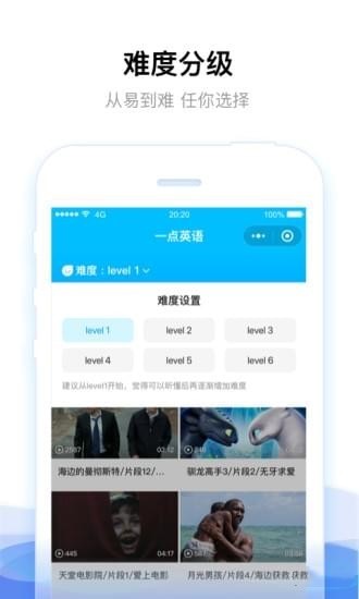 一点英语安卓版是一款为英语爱好者专门打造的英语学习应用软件,用户可以在一点英语app上观看英语视频,学习视频里的英语语法和习惯,让你快速提升英语口语水平,更好的用英语和外国人进行交流沟通。