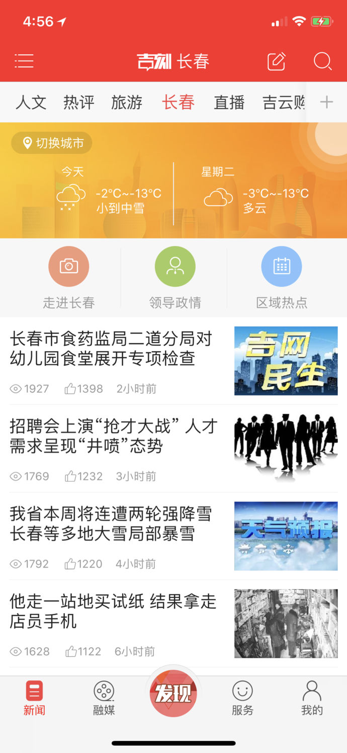 吉刻是吉林省推动媒体融合发展的重点项目。吉刻APP包含“移动互联网新闻、融媒体、政务和公共服务、舆情和电子商务”五大应用属性。