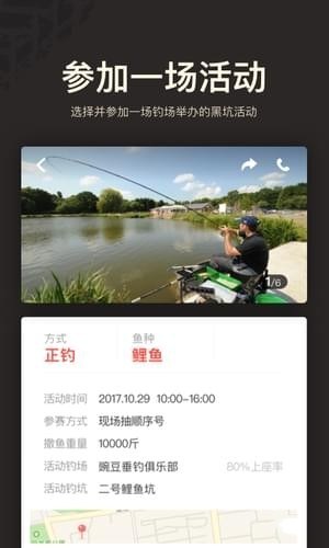 【参加活动】在微钓app可以选择并参加钓场举办的黑坑活动。