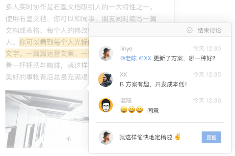 针对文档的某处细节即时讨论,告别Email+IM的低效时代