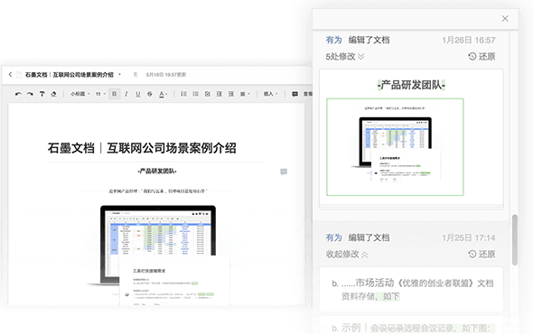 所有的编辑历史都将自动保存,随时追溯查看,还可一键还原到任一历史版本。