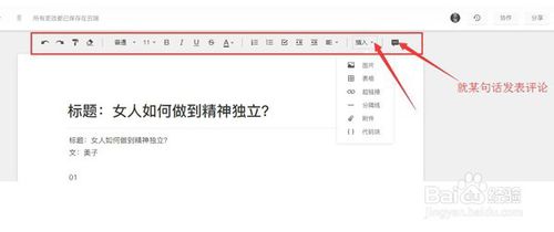 对于WORD文档工具,调节字体大小,插入链接、或者横线都是很齐全的,另外还具备了“评论”功能,比如方案中对某一点有疑问,或者不同的看法,可直接在线写好,公司里的其他人也能同时看到你写的内容,真的很方便。