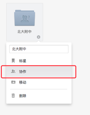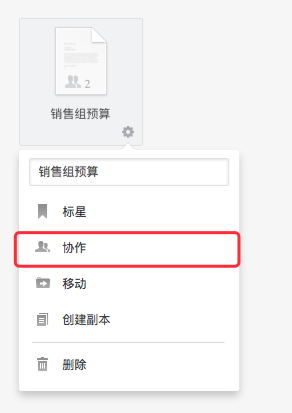 在石墨桌面上,将鼠标指针悬浮在文档上,点击文档右下方的「 齿轮设置 」按钮,然后选择「 协作 」,如下图所示:
