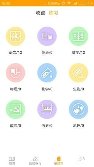 1:错题上传:用户拍照上传题目图片,按学科归类,方便用户查看,并支持导出打印。2:在线练习:根据用户选择的知识点和科目匹配练习题目供用户在线练习。