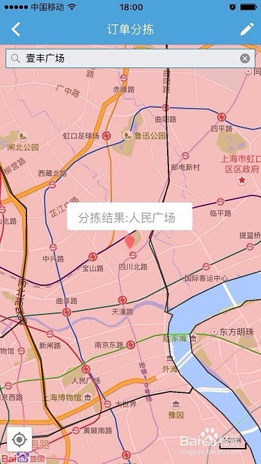 手机端订单分拣网页端开启“订单分拣”插件后,手机端登录地图无忧APP,默认进入分拣状态,在搜索框中输入地址,可完成地址所属区域的分拣操作,适用于外勤人员。点右上角的【编辑】按钮可切换到地图编辑状态。