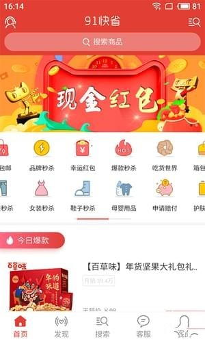 91快省app每日精选品牌打折商品,提供大额优惠券领取。