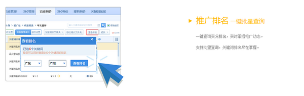 同步百度推广助手全部功能,360比翼子链管理首发上线。