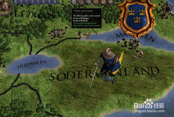 与一代相比,多了男爵可以分封,点省份,除了最左上角的城堡是该省伯爵拥有,下面的村子、教堂和其他空地就是可以用于分封男爵的领地。