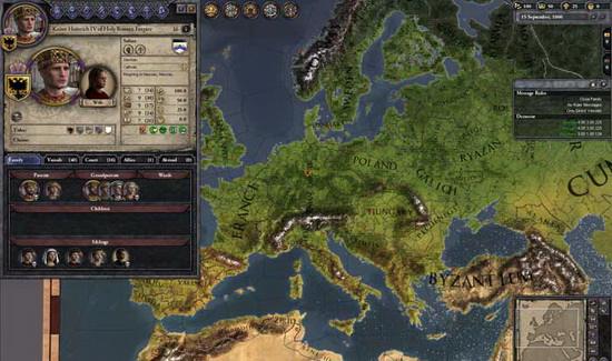 如果你扮演拜占廷皇帝,拉拢到意大利南端apulia公爵的头衔的claim holder,然后对apulia现任公爵发动战争,胜利后,该公爵直接变为你的封臣。这是因为从法理上(自己看法理地图上法理公国,国家,帝国的划分),拜占庭帝国是该公爵的liege(游戏是这么判断的,虽然说实际上的liege应该是拜占庭kingdom,但这不存在)