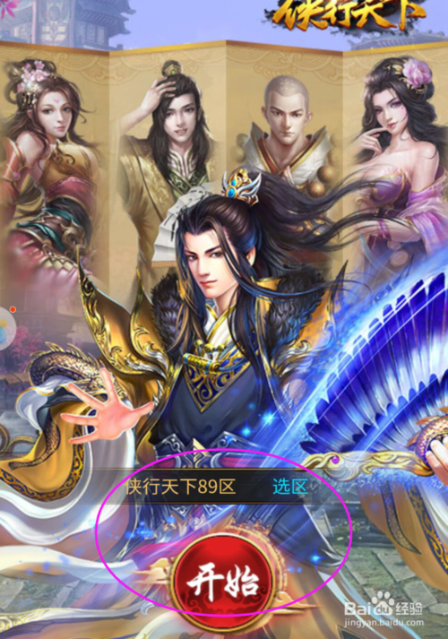小编就开始加入侠行天下,选择侠行天下89区作为我们玩游戏的区,如图。