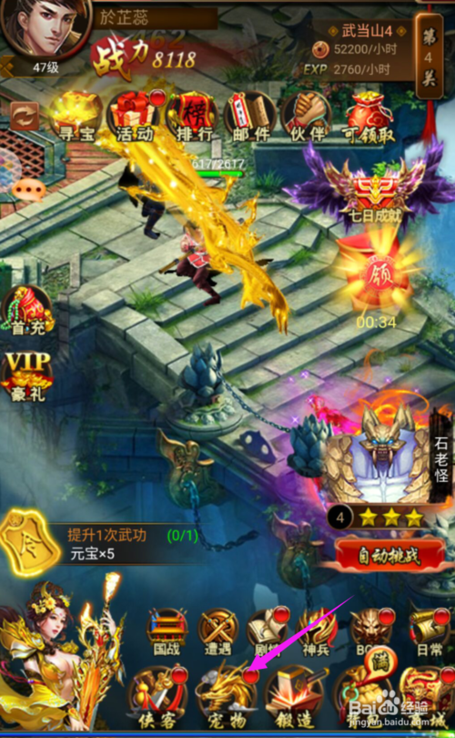 侠行天下页面,我们看到【宠物】,点下,如图。