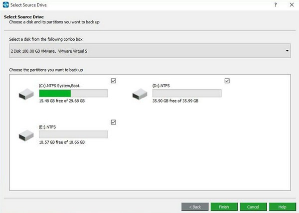 第二步,在备份窗口,单击Source选项卡选择要备份的硬盘,开始检查所有的分区。