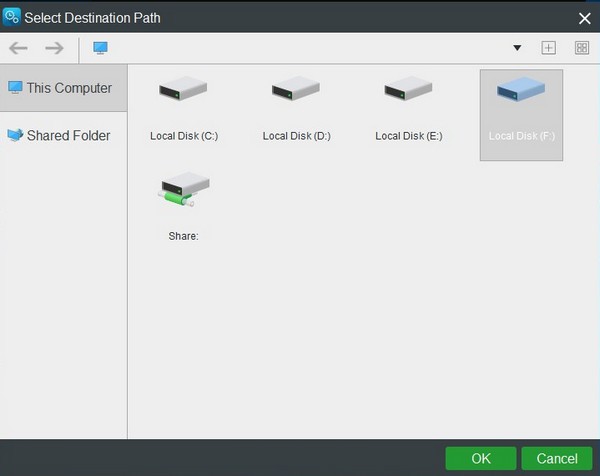 第三步, 选择一个目标地址来存储磁盘镜像。你可以备份磁盘分区在您的计算机上。这里建议选择一个外部硬盘的分区作为磁盘镜像的存储位置。