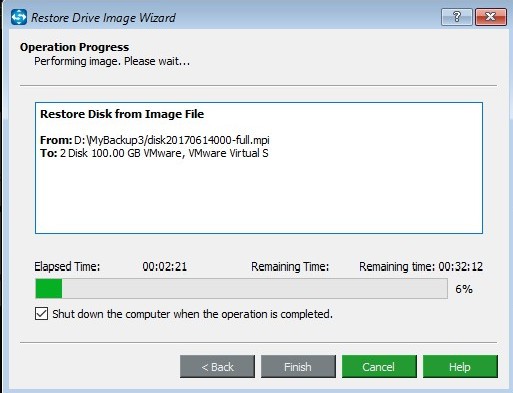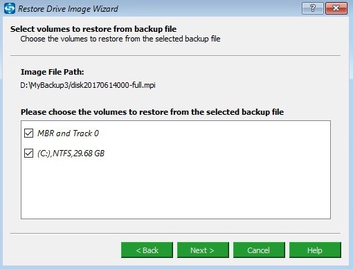 注意:MBR and Track 0 选项恢复是至关重要的,否则,系统在还原完成后将无法启动。因此,请一定要勾选它。