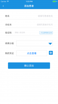 1.患者搜索;2.轻松添加患者:姓名填写,手机号码验证;