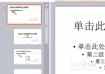 powerpoint2007怎么制作幻灯片?1、点击打开一个ppt文件以后,看到幻灯片1。这个一般是写标题的,在右侧的操作界面中,可以对第一页中对文件内容做一个标题。