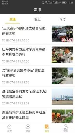 河北交通app由河北省道路运输协会官方出品的综合交通出行信息服务应用软件,为市民的日常出行提供一站式的综合交通信息服务。通过新闻咨询可为市民提供全方面、及时的交通资讯、政策解读与出行提示。