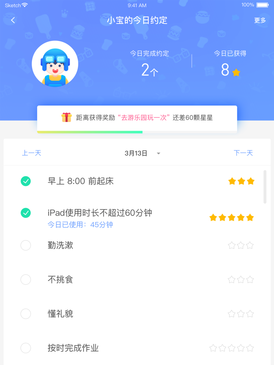 小约定ios版是一款为孩子打造的教育学习应用,父母可以在小约定app上与孩子进行约定,帮助孩子养成良好的习惯,增进亲子间的感情。用户每天完成约定可以拿到小星星,一定数量的小星星还可以兑换奖励。