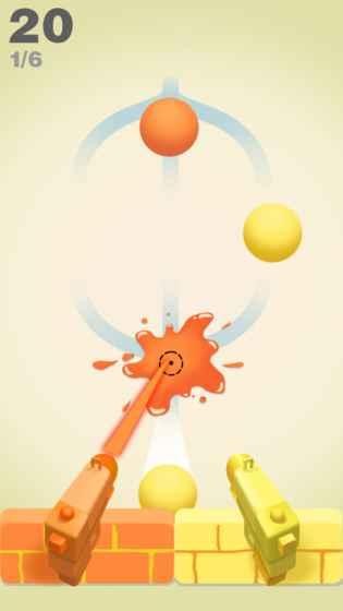 1、这款游戏的画面非常简洁,两把枪,几个不同颜色的小球就组成了游戏内所有的一切;2、你需要同时控制两把枪,并且还要击中与枪颜色相同的小球,如果击错的话游戏就会失败;