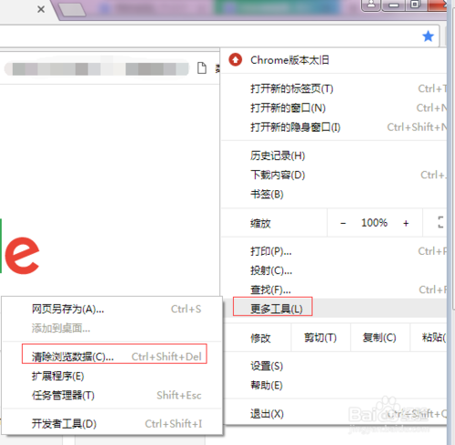 单击Chrome浏览器的菜单图标,弹出如下截图1所示的对话框,在对话框中将鼠标移到“更多工具”后,会出现图2 所示的对话框。