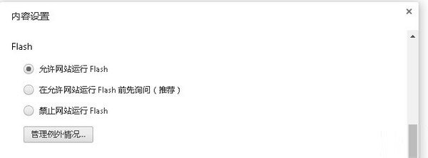 1. 打开 chrome://settings/content,把 Adobe Flash Player 插件设置更改为"允许网站运行Flash"。