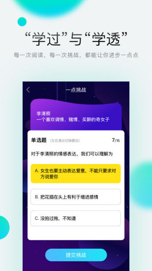 结合贴吧、论坛、博客、问答的特点,将形式多样的知识个性化展现,浓缩知识的同时,提升学习趣味性,让你重拾学习乐趣。