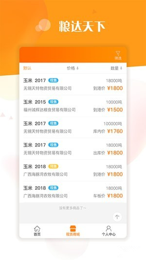 现货商城:粮达网app支持现货多项联动查询、现货详情查看和应单;
