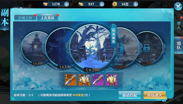 上古圣墟是多人副本,选择【自动匹配】或者【队伍进入】均可。【自动匹配】是进入其他队伍,队伍进入是自己为队长进行组队。