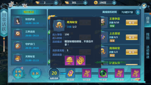 入口在【日常】-【南海秘宝】,很轻松就可以找到~