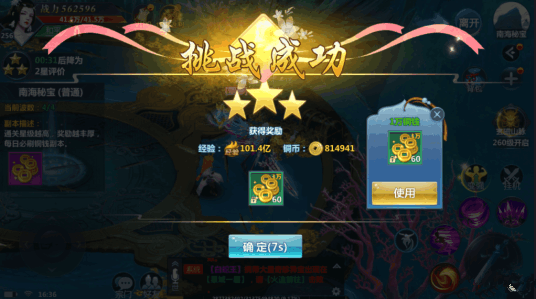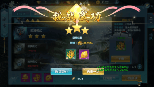 点击进入副本之后就可以美滋滋的挂机了。但要关注时间,三星通关是有时间限制的。通关星级越高,奖励相对更丰厚。