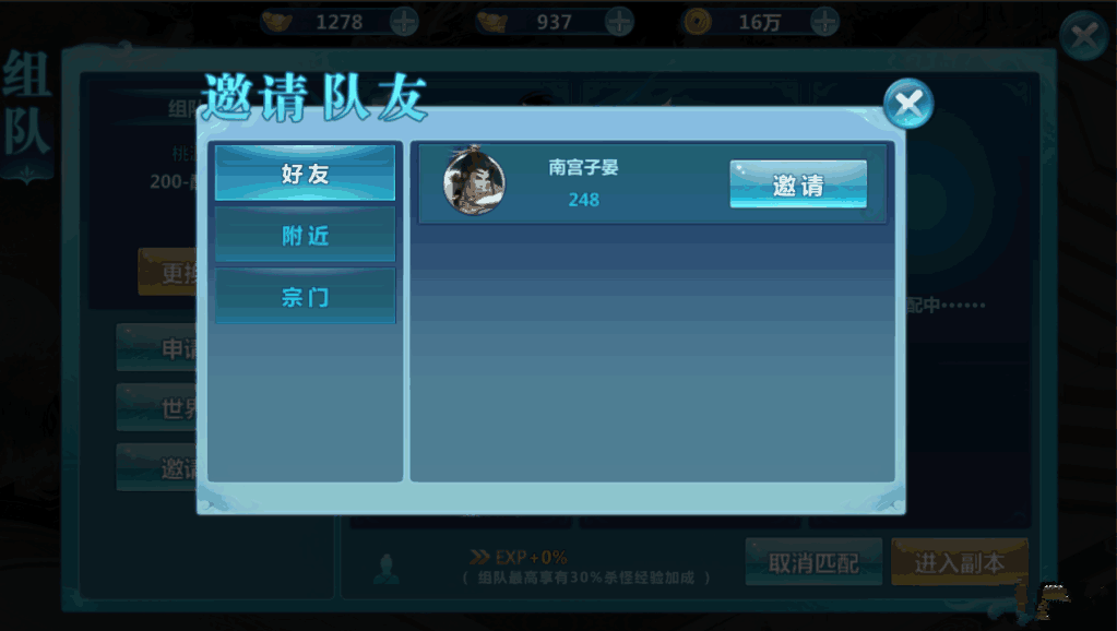 缺少队员的话可以通过【世界喊话】、【邀请队员】来召集道友~