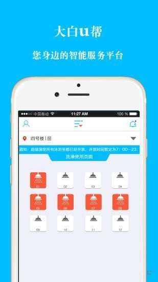大白U帮app是一款专门面向大中专院校用户校园服务的手机客户端软件。大白U帮app用户成为注册用户后,即可使用本客户端软件预约可以提供洗澡服务的洗澡间,用户可以自己选定使用服务的时间并通过个人账户的余额进行结算。大白U帮app同时对接了数量庞大的洗澡硬件系统,“大白U帮”提供了非常好的人机交互界面和线上功能。