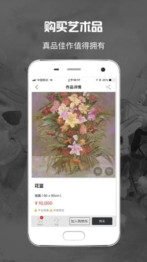 - 艺术爱好者可以在这里欣赏大量的艺术作品,并有艺术资深爱好者或专业评论家点评艺术品,帮助你理解、欣赏;- 艺术品消费者可以在这里购买到价格适中的艺术品,而且可以参考专业艺术评论家或艺术爱好者给出的客观的评价