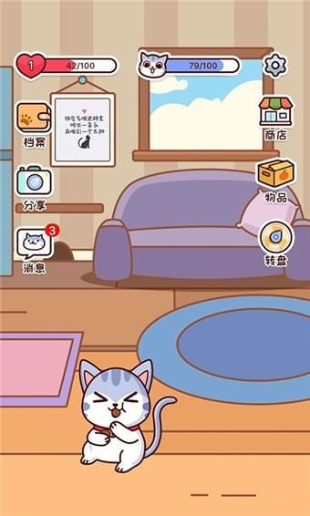 陪伴养成:闲趣时刻陪伴,可爱的互动猫咪,给他喂食和他玩耍,它将陪你一起成长!铲屎官,你要对它负责到底哦~