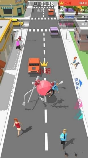 还是在同样的城市当中,还是同样的放肆破坏。不同的是我们这次不在控制黑洞进行疯狂的吞噬了,而是利用石头不断的把城市中的一切粘在自己的身上从而让自己变得越来越大。在这个过程中你要躲避比你大的寻找比你小的,如果撞爆它们将可以获得它们身上的所有资源,让自己疯狂的发展。被别人撞爆了也不要慌,会随机在新的地方复活,当前大小是不会变化啊。