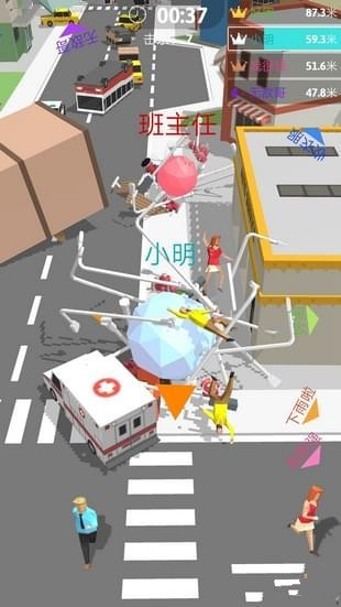 滚动大作战是一款能够让玩家轻松畅玩的游戏,丰富的玩法以及欢乐的体验给玩家带来了无限的乐趣,游戏的操作十分的简单,但是玩法却是非常的魔性,能够给玩家欢乐的体验!游戏和黑洞大作战的玩法有点类似,玩家需要控制小球不断的变大来打败所有的敌人,最终活到最后!还是在同样的城市当中,还是同样的放肆破坏。不同的是我们这次不在控制黑洞进行疯狂的吞噬了,而是利用石头不断的把城市中的一切粘在自己的身上从而让自己变得越来越大。在这个过程中你要躲避比你大的寻找比你小的,如果撞爆它们将可以获得它们身上的所有资源,让自己疯狂的发展。被别人撞爆了也不要慌,会随机在新的地方复活,当前大小是不会变化啊。