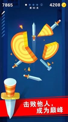 向目标扔出飞刀并将它们击破,每五关将迎来BOSS关卡,更具挑战。获取金币兑换更多款式的飞刀。
