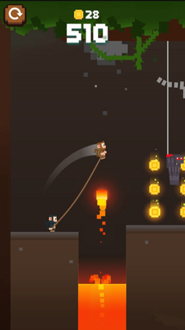 《猴子绳索》(Monkey Ropes) 是由PlaySide公司制作的手机游戏,同样好玩刺激的休闲益智类游戏。游戏的玩法十分简单,采用的是传统的无尽跑酷模式,目的是获得更高的分数。闯关时你需要控制两只被绳子连接在一起的猴子,然后在危险重重的密林中穿行,依靠有趣的平台跳跃方式,不断交错跳跃前进,同时躲避途中的各式陷阱和凶残鳄鱼等猛兽的攻击,尽可能让自己活的更久一些,并向着更高分数发起挑战。