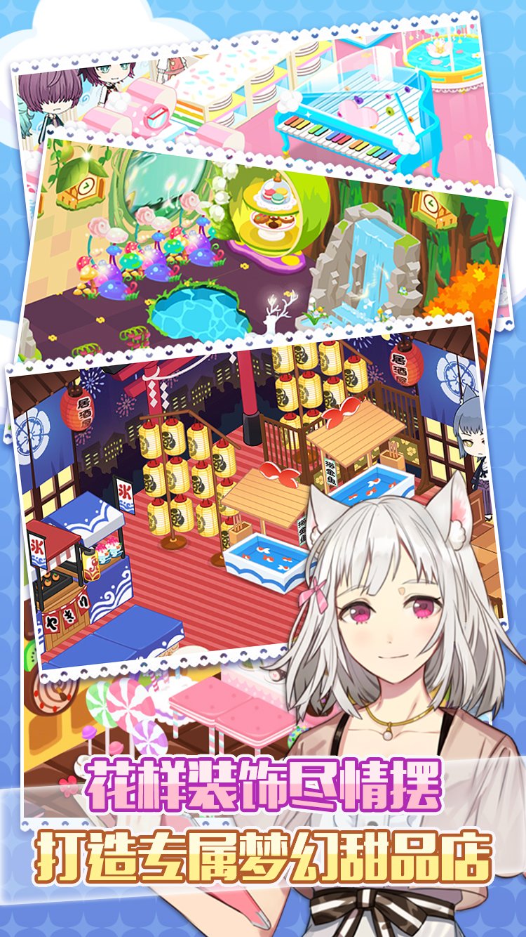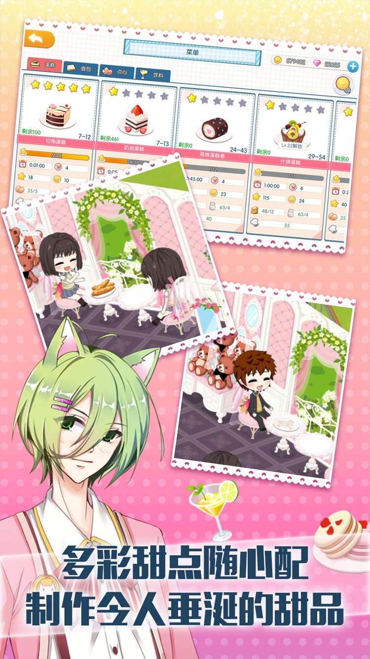 想不想经营一家属于自己的甜品呢?《萌猫物语》帮你实现!猫咪男子将手把手教你如何开店、如何制作甜品、如何布置独具一格的店铺,与猫咪男子们共同努力打造出世界顶级甜品店吧!