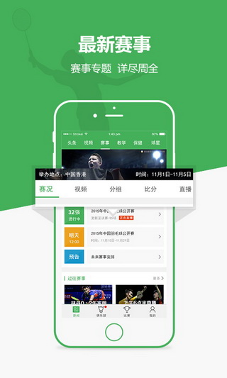 所有与比赛相关的信息应有尽有。手机看直播,赛事直播提醒,每场比赛具体比分,比赛战报,比赛分组....