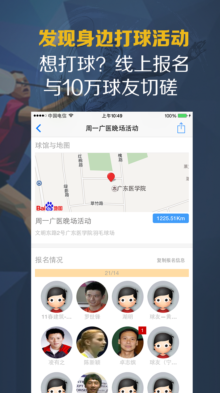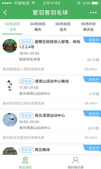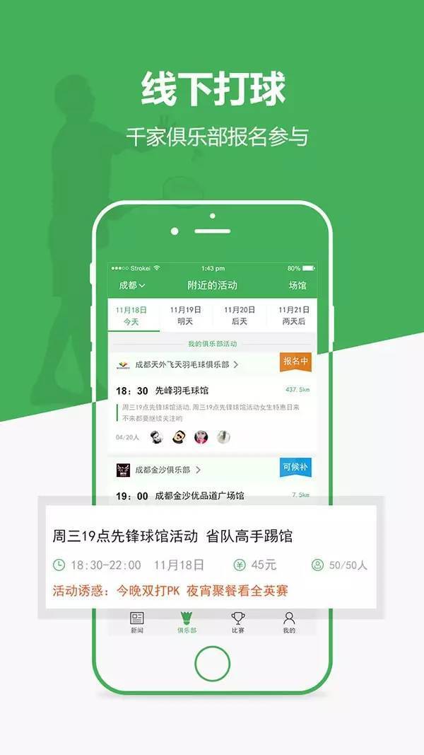 全国上千家羽毛球俱乐部等你来报名参与打球活动;