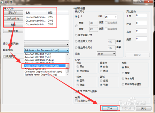 这时进入了批处理的页面,点击左上角添加需要转换的文件,选择转换的输出文件格式,点击开始转换就可以了。