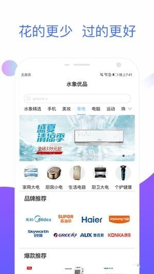 水象优品app是一个主要为提供家电、女性用品以及3C等商品的科技赋能商城。水象优品app除了包邮、正品保证等基本服务以外,水象优品app还引入分期服务,给用户提供更友好的多元消费模式。