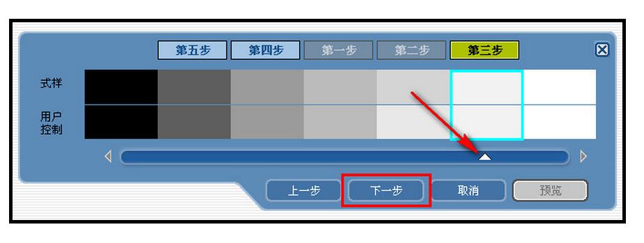 控制“亮度控制条”,将控制块的亮度与背景模式的亮度匹配。