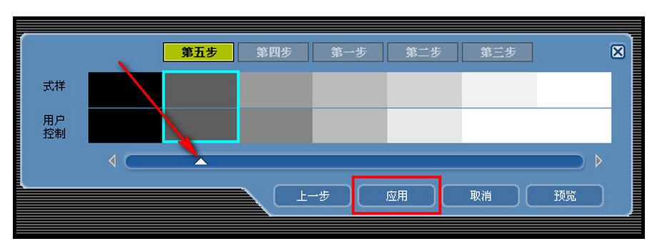 3、依次将“白色三角形”图标拖动到每一步的范围内,前四步点击【下一步】,第五步点击【应用】。