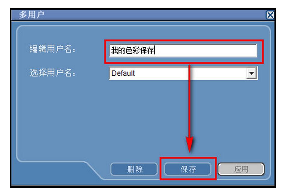 4、在【编辑用户名】旁边的对话框内输入这次校准的名称,例如:【我的色彩保存】,然后点击【保存】即可。