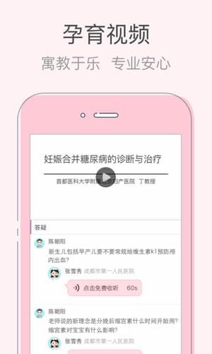 【在线问诊】免挂号!1分钟找到全国6万妇产科、儿科医生在线预诊,减轻各阶段去医院、诊所的麻烦;【妈妈问答】全国名医定期在线讲解孕期知识:怀孕食谱、产院建卡、产检、宝宝发育、怀孕禁忌、生男生女、B超、能不能吃,并设课后答疑,全面呵护小贝贝;