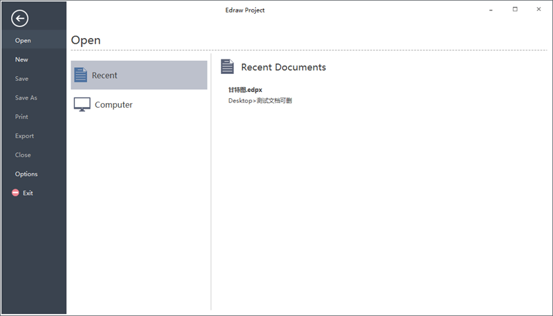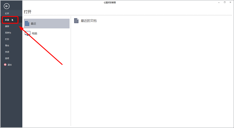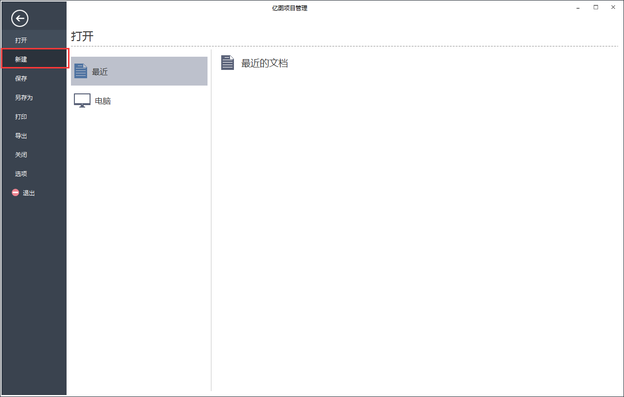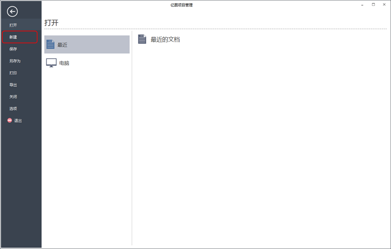 下载安装好Edraw Project之后,打开软件,点击“新建”创建一个新的空白项目文档。